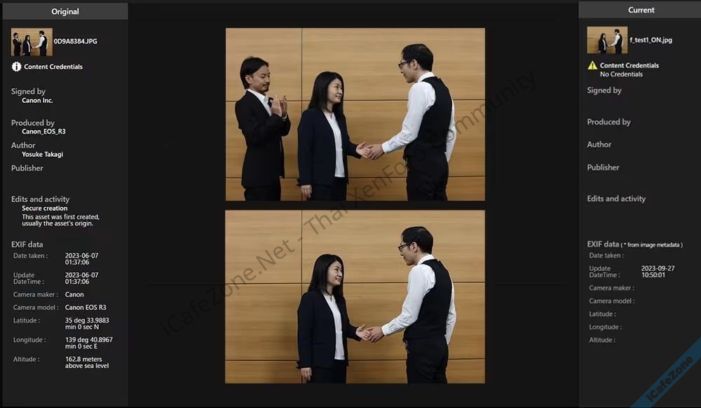 ภาพจากแอปของ Canon ที่ตรวจสอบว่าภาพมีความเปลี่ยนแปลงไปอย่างไร