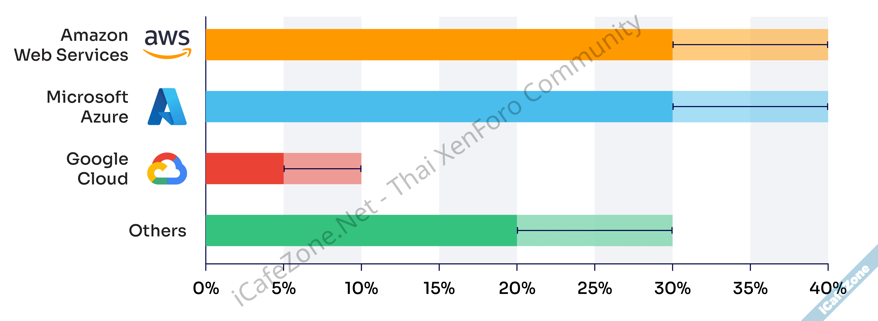 ส่วนแบ่งตลาดคลาวด์ในสหราชอาณาจักรเมื่อปี 2021