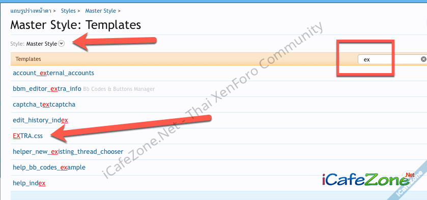 1. ให้ไปที่ Appearances - Templates เลือก style ที่ท่านใช้แล้ว search คำว่า EXTRA.css แล้วคลิกเปิดขึ้นมา