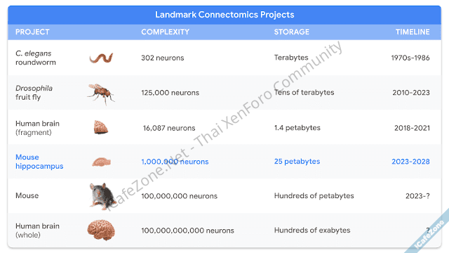 โครงการนี้เป็นโครงการต่อเนื่องมาจากโครงการเมื่อปี 2020 ที่กูเกิลเคยปล่อยแผนที่สมองแมลงวันความซับซ้อนขนาด 25,000 นิวรอนออกมาก่อนแล้ว โดยความซับซ้อนของสมองนั้นไม่ได้อยู่ที่จำนวนนิวรอนเพียงอย่างเดียวแต่ยังมีการเชื่อมต่อด้วย เช่นสมองแมลงวันมีขนาดประมาณ 125,000 นิวรอน ขนาดข้อมูลรวมระดับ 10 เทราไบต์ แต่สมองมนุษย์เพียงส่วนเล็กๆ 16,087 นิวรอน ก็มีขนาดข้อมูลถึง 1.4 เพตาไบต์ไปแล้ว สำหร้บสมองหนูส่วนฮิปโปแคมปัสนี้คาดว่าจะมีข้อมูลรวม 25 เพตาไบต์
