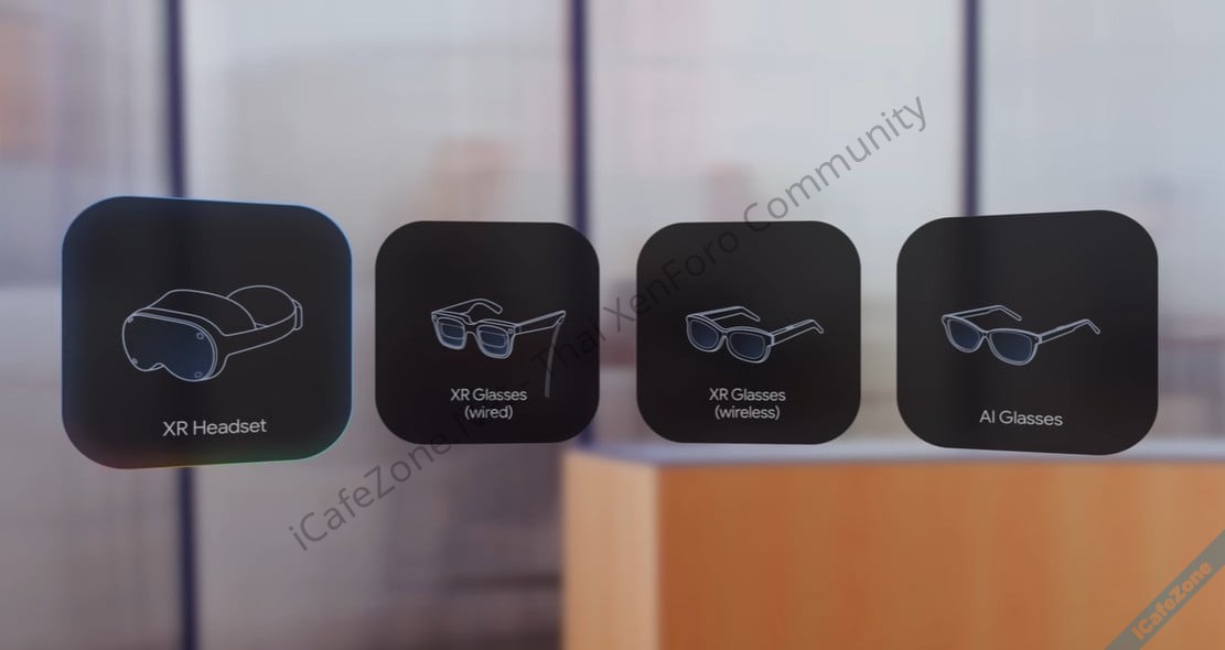 Wired XR Glasses แว่นสายตาแบบมีหน้าจอฝังในแว่น แต่มีสายต่อเพื่อประมวลผลนอกแว่น (ต่อเข้ามือถือ) ให้แว่นมีน้ำหนักเบาลง แว่นตัวนี้คือ Project Aura ที่พัฒนาร่วมกับ XREAL และเคยนำมาโชว์ในงาน Google I/O 2025