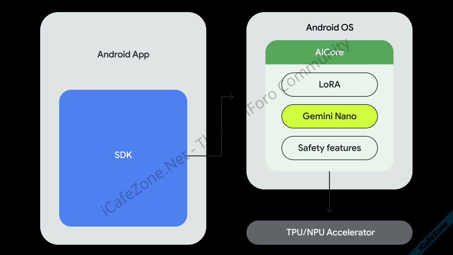 ภายในตัว AICore นอกจากตัวโมเดลแล้ว ยังมีส่วนที่เรียกว่า Low Rank Adaptation (LoRA ที่ไม่เกี่ยวอะไรกับโปรโตคอล IoT) ทำงานด้าน fine tuning และมีฟีเจอร์ด้านความปลอดภัยของโมเดล