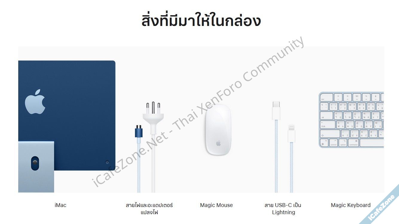 โดยในหน้าเว็บไซต์ของแอปเปิล ระบุว่าอุปกรณ์เสริมที่มีมาให้ในกล่องสำหรับคนซื้อ iMac นั้น ทั้ง Magic Mouse, Magic Keyboard ยังคงใช้พอร์ต Lightning โดยแอปเปิลให้สายแปลง USB-C เป็น Lightning มาด้วย รวมทั้งหน้าซื้ออุปกรณ์เสริมแยกซึ่งรวมทั้ง Magic Trackpad ก็ยังคงใช้พอร์ต Lightning เหมือนเดิม