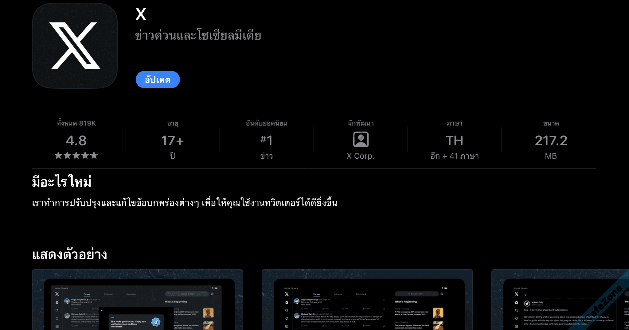 แอป X/Twitter ใน App Store ของ iOS ได้ออกอัพเดตเวอร์ชันล่าสุด หลังจากอัพเดตก่อนหน้านี้เปลี่ยนโลโก้จากนกสีฟ้ามาเป็น X สีดำ โดยมีการเปลี่ยนแปลงสำคัญคือ แอปเปลี่ยนชื่อใน Store เป็น X อย่างเป็นทางการ