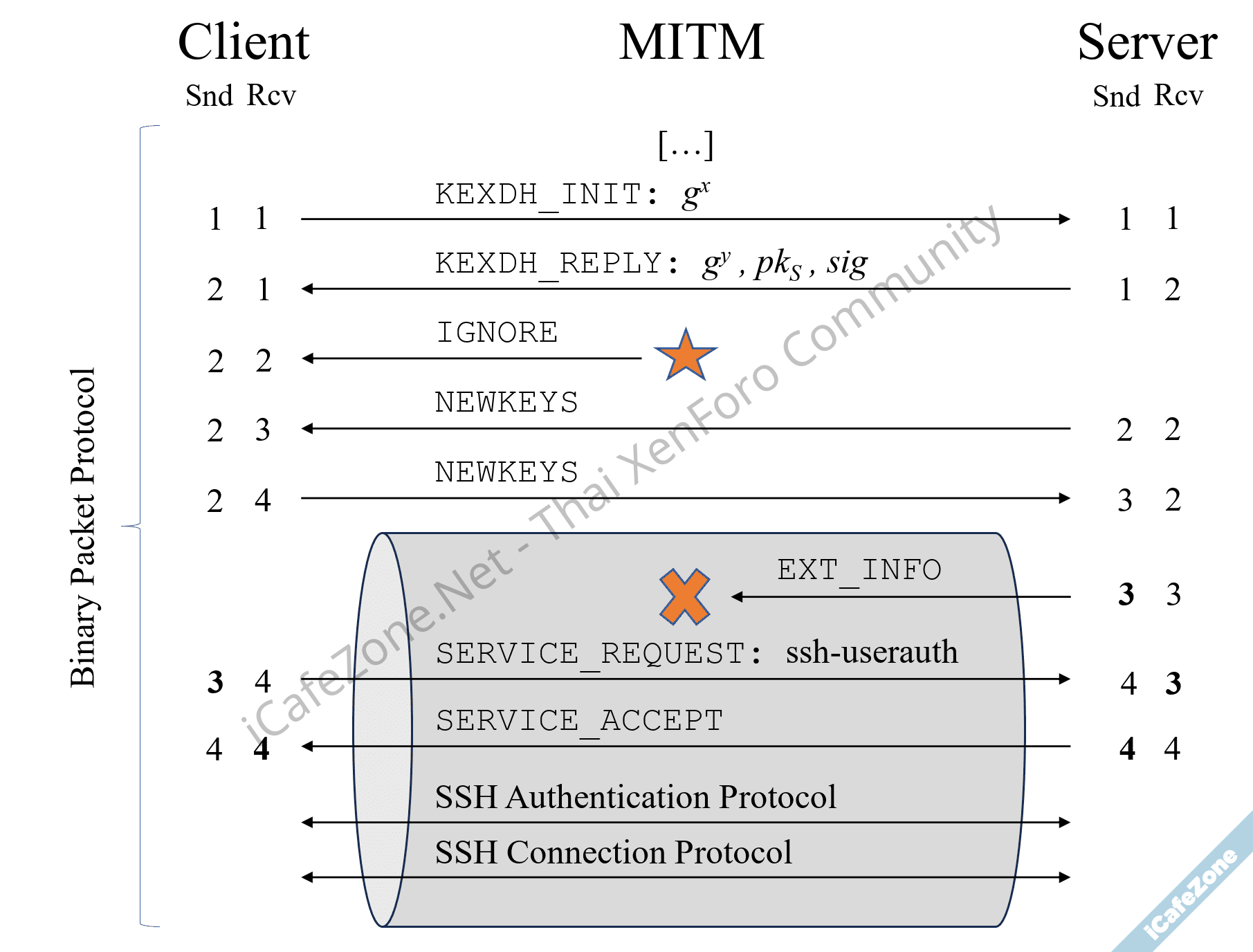 [email protected]) หรือ CBC พร้อมกับ Encrypt-then-MAC ([email protected]) สองแบบเท่านั้น หากกังวลก็อาจจะจำกัดรูปแบบการเข้ารหัสเพิ่มเติมที่มา - Terrapin-Attack