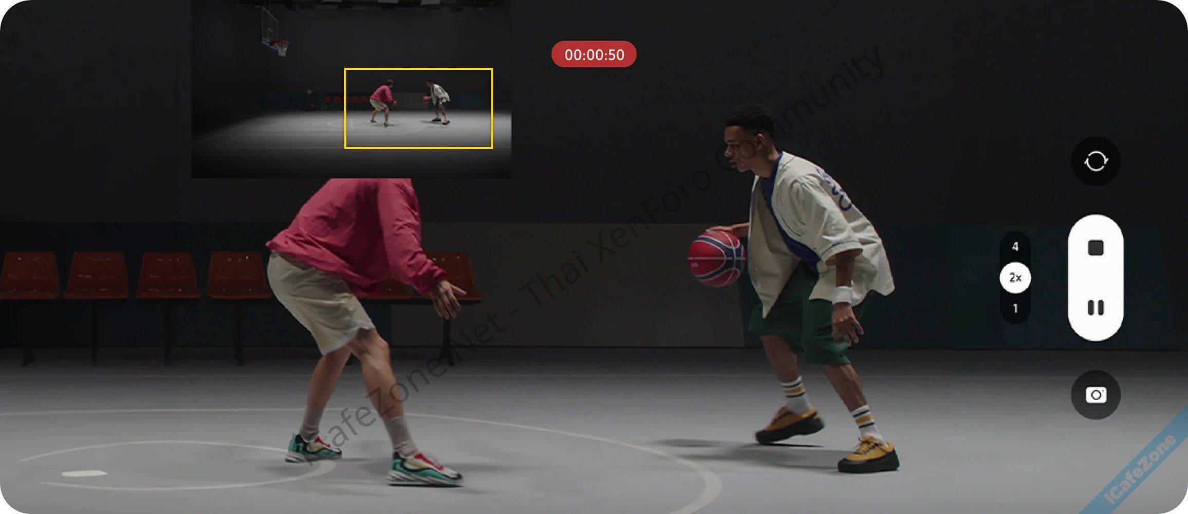 ซัมซุงยังร่วมมือกับ Qualcomm AI engine ที่ใช้ใน Snapdragon 8 Gen 3 ตรวจจับวัตถุที่เราต้องการถ่ายในคลิป แล้วขยับตำแหน่งซูมตามให้อัตโนมัติ (Track on Any Subject) ตัวอย่างคือการถ่ายซูมตามนักกีฬาซึ่งเคลื่อนไหวอยู่ตลอดเวลา (ในคลิปข้างต้น) การที่ผู้ถ่ายไม่ต้องขยับกล้องตามนักกีฬาตลอด ช่วยให้ภาพสั่นน้อยลง คุณภาพของวิดีโอสูงขึ้น ซูมเข้าออกได้ตามต้องการ แถมการถ่าย 2 สตรีมพร้อมกันในมุมมองที่แตกต่างก็ยังเปิดโอกาสให้เกิดความสร้างสรรค์ใหม่ๆ ได้อีกมาก