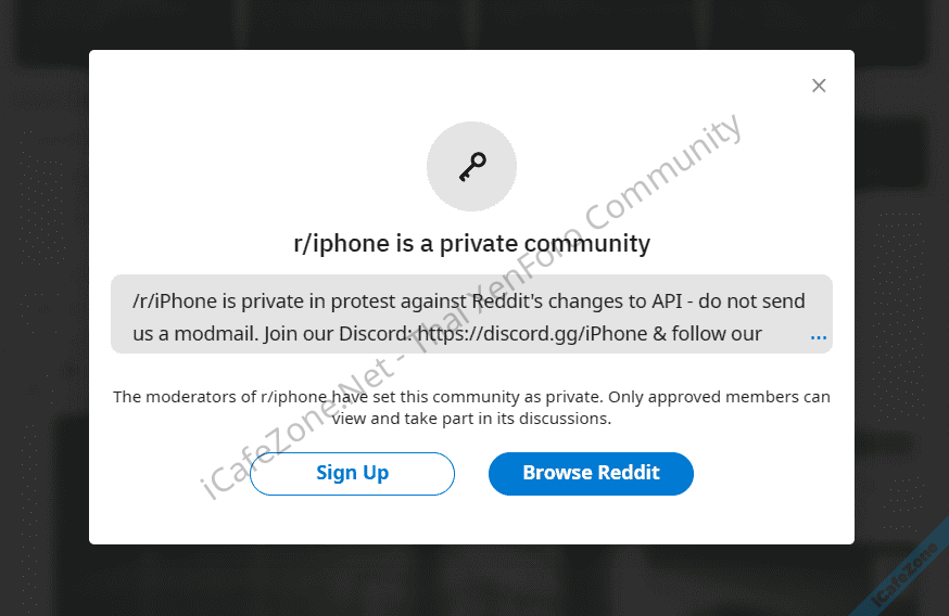 ตัวอย่างหน้าชุมชน r/iphone ที่ปิดบอร์ดเป็น private