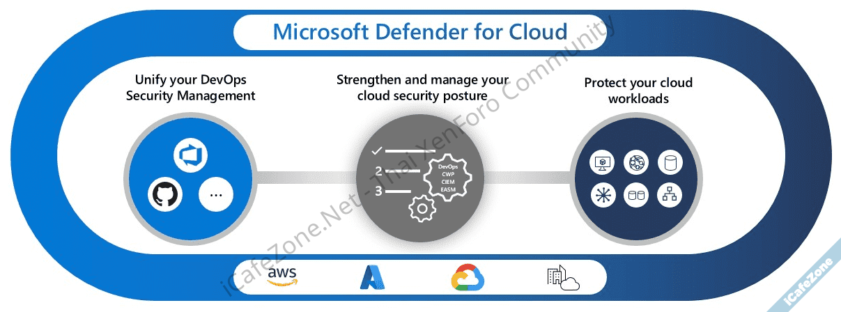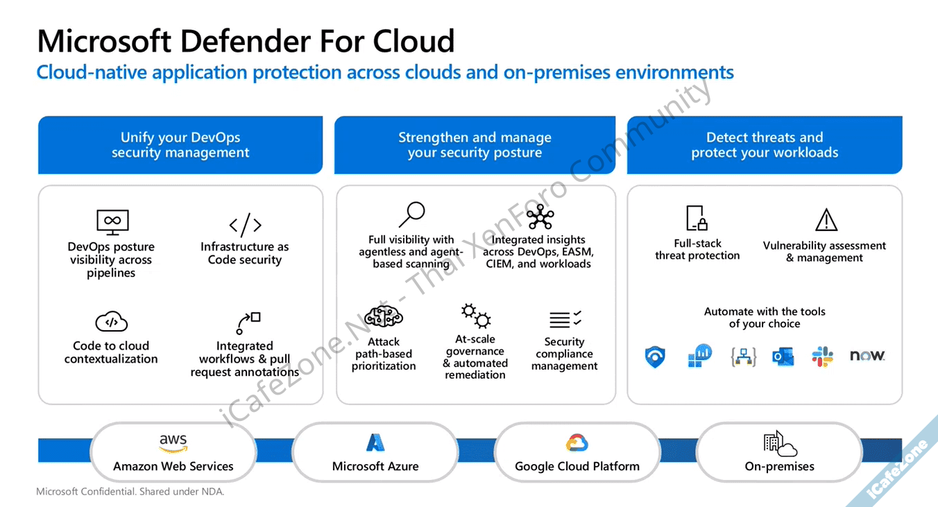 Microsoft Defender for Cloud เป็นแพลตฟอร์มดูแลความปลอดภัยระบบไอทีบนคลาวด์ที่ครอบคลุมตลอดอายุการใช้งานของบริการไอทีในองค์กร โดยแบ่งออกเป็นบริการ 3 ส่วน ได้แก่