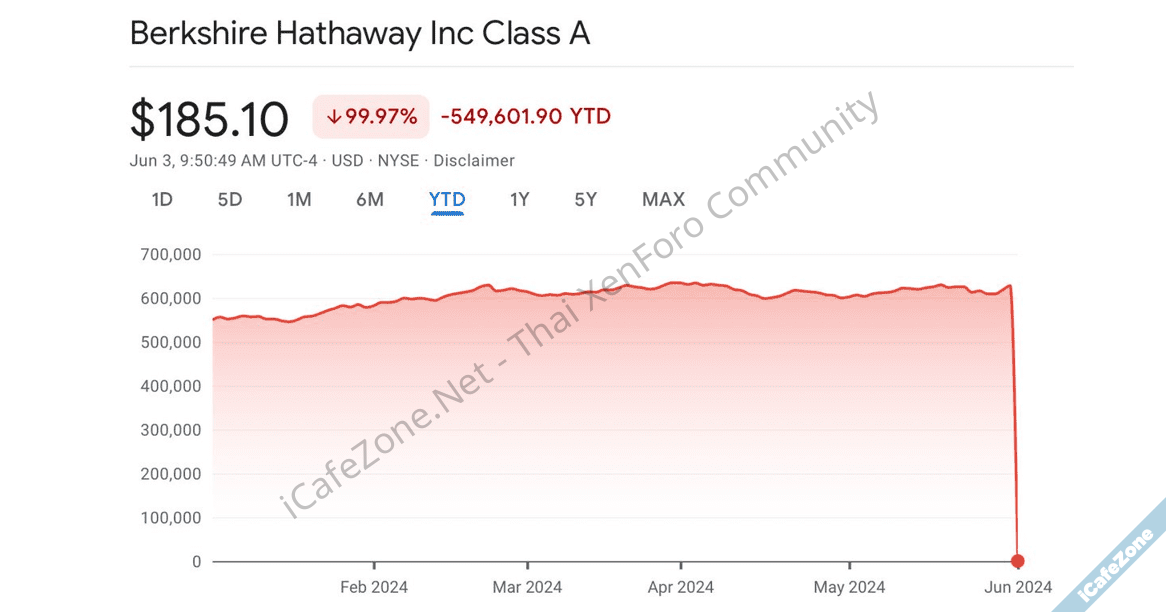 The New York Stock Exchange (NYSE) หรือตลาดหลักทรัพย์นิวยอร์ก ชี้แจงปัญหาที่เกิดขึ้นกับราคาหุ้นของบริษัท Berkshire Hathaway คลาส A (BRK.A) บริษัทด้านการลงทุนของ Warrent Buffett เมื่อคืนนี้ ซึ่งราคาปรับลดลงมากกว่า 99.9% จากราคากว่า 620,000 ดอลลาร์ เหลือประมาณ 185 ดอลลาร์เท่านั้น ทำให้ NYSE สั่งหยุดการซื้อขายหุ้น BRK.A ชั่วคราว