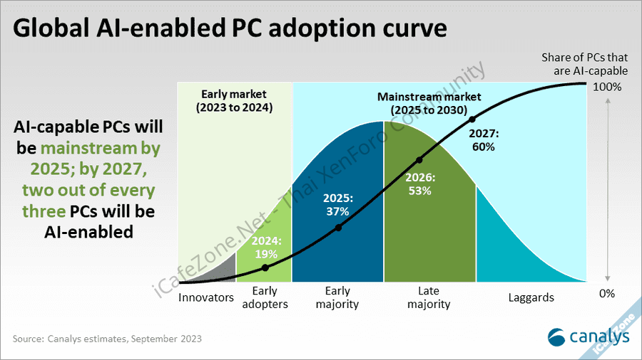 IDC มองว่ารอบการอัพเกรดพีซีใหญ่ จากการที่ Windows 10 หมดระยะซัพพอร์ต จะเสริมให้ยอดขายพีซีเติบโตภายในครึ่งหลังปี 2024 รวมถึงพีซียังมีโอกาสจากการเติบโตของ Generative AI หากแนวโน้มนี้มีความชัดเจนมากขึ้น ส่วน Gartner มองว่าปี 2024 ตลาดพีซีจะเริ่มเติบโตทั้งฝั่งธุรกิจและลูกค้าบุคคล เป็นผลจาก Windows 10 ที่หมดระยะซัพพอร์ต และ Canalys มองภาพใหญ่กว่าคือพีซีที่รองรับการทำงาน AI จะเริ่มเป็นพีซีกระแสหลักในปี 2025 ทำให้ยอดขายพีซีเติบโตมากขึ้น