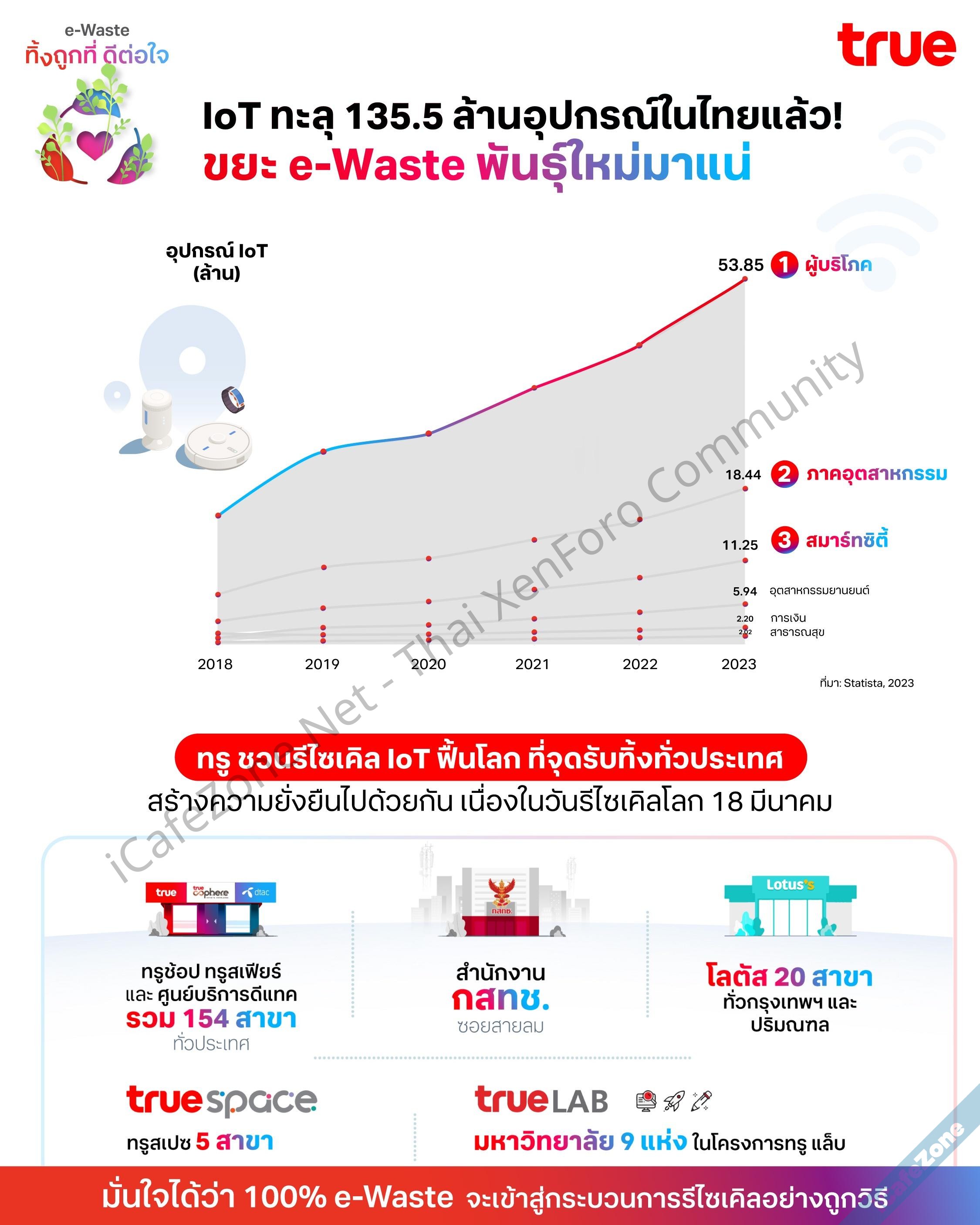 ทรู เปิดตัวโครงการ e-Waste ทิ้งถูกที่ ดีต่อใจ ให้ลูกค้าและประชาชนทุกคนสามารถนำสมาร์ทโฟนเก่า โทรศัพท์มือถือ อุปกรณ์เสริม และอุปกรณ์ IoT ที่ไม่ใช้แล้วมาทิ้งได้ตามจุดที่กำหนด