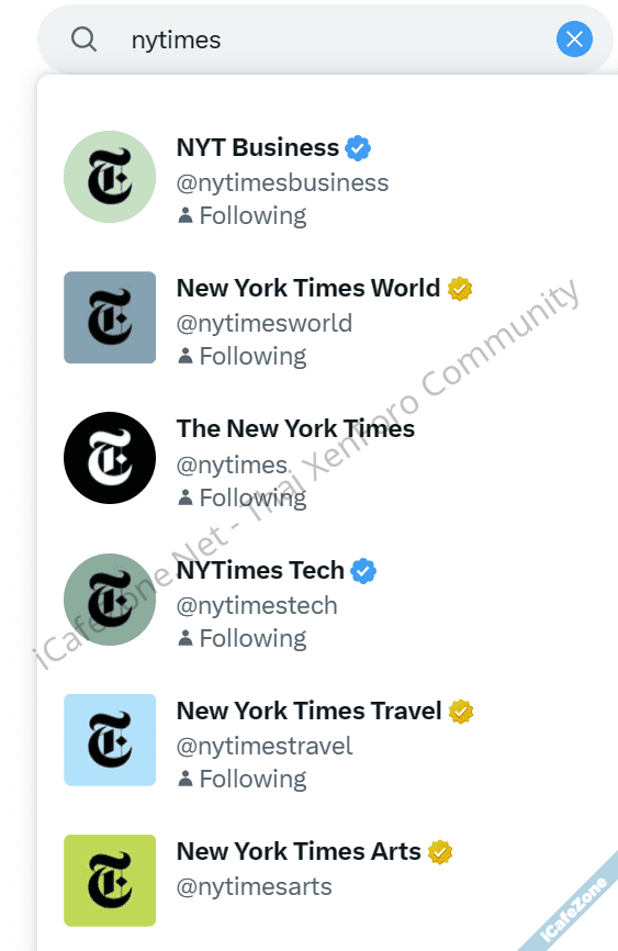 ณ เวลาที่เขียนข่าวนี้ บัญชีทวิตเตอร์อื่นๆ ของเครือ The New York Times เช่น @nytimesworld, @nytimestech ยังมีเครื่องหมายถูก (ทั้งสีฟ้าแบบเดิม และสีทองสำหรับบัญชีธุรกิจ) มีเพียงบัญชีหลัก @nytimes เท่านั้นที่ถูกนำเครื่องหมายถูกออกไป