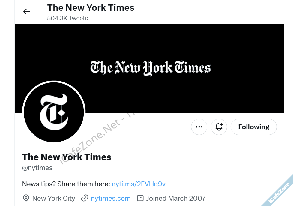 บัญชีทวิตเตอร์ของสื่อใหญ่อย่าง The New York Times (@nytimes) โดนถอดเครื่องหมายติ๊กถูกสีฟ้า Verified ออกแล้ว หลังพ้นกำหนดเลิกใช้งาน Verified แบบเก่า เปลี่ยนมาเป็น Twitter Blue ในวันที่ 1 เมษายน
