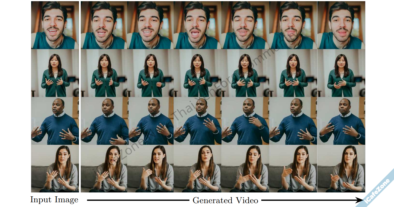 Google Research เผยแพร่งานวิจัยหัวข้อ "VLOGGER: Multimodal Diffusion for Embodied Avatar Synthesis" เป็นโมเดล AI ที่ใช้อินพุทภาพบุคคล 1 ภาพ และไฟล์เสียง สามารถสร้างวิดีโอที่ขยับได้ตามเสียงทั้งปาก ใบหน้า ศีรษะ ตลอดจนมือ