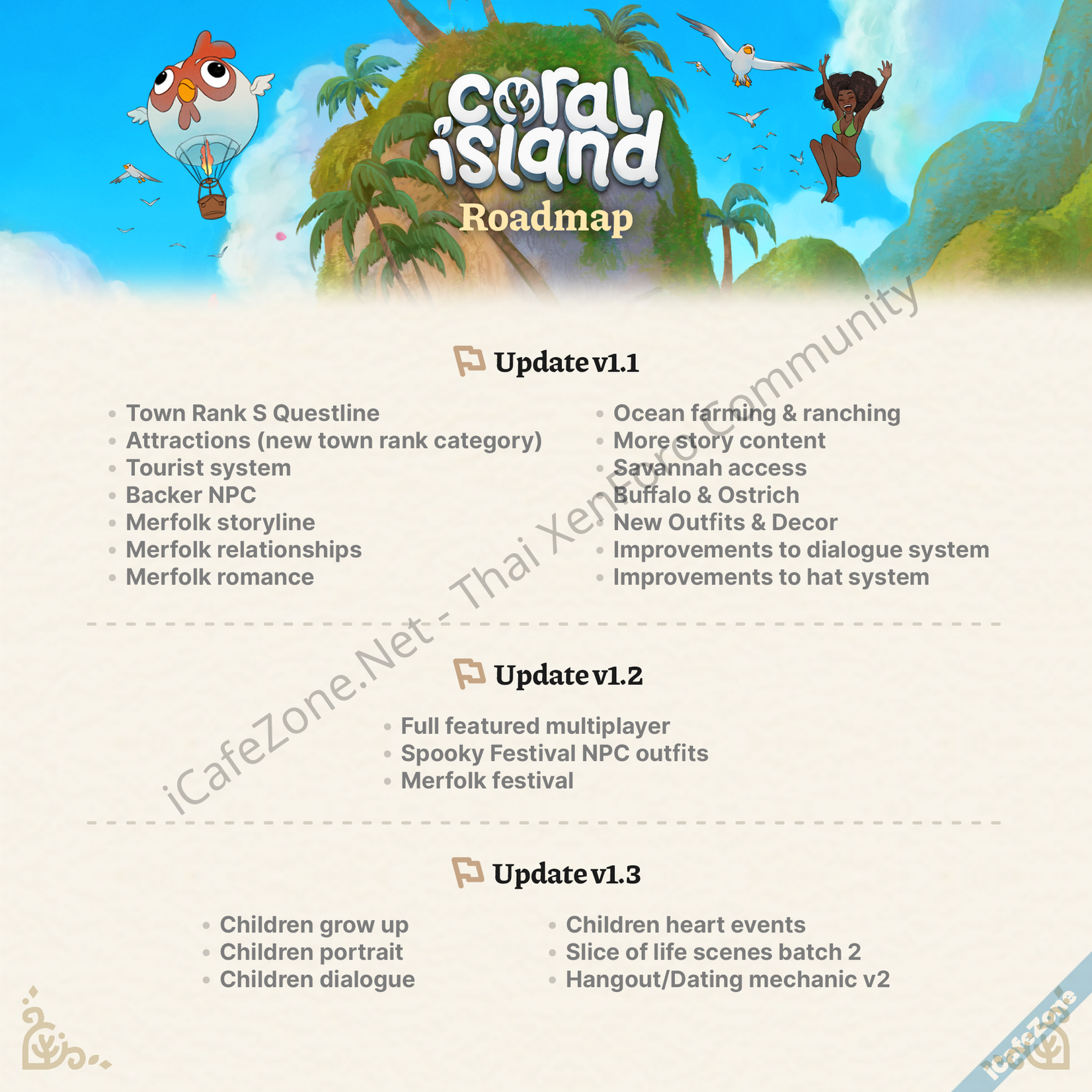 Coral Island เกมอินดี้ทำฟาร์มติดเกาะยอดฮิตจากโครงการ Kickstarter ที่ได้รับการสนับสนุนอย่างล้นหลาม มียอดการลงทุนจาก Backer มากกว่า 1 ล้านดอลลาร์สหรัฐ (จากที่ตั้งเป้าไว้ 70,000 ดอลลาร์) ประกาศ Roadmap อัปเดตตัวเกมตลอดทั้งปี โดย Stair Way ผู้พัฒนาเกมบอกว่าทีมงานติดตามความคิดเห็นจากชุมชนจากทั้ง Discord, Steam, Reddit และโซเชียลมีเดีย ตั้งแต่ปล่อยตัวเกมเวอร์ชัน 1.0