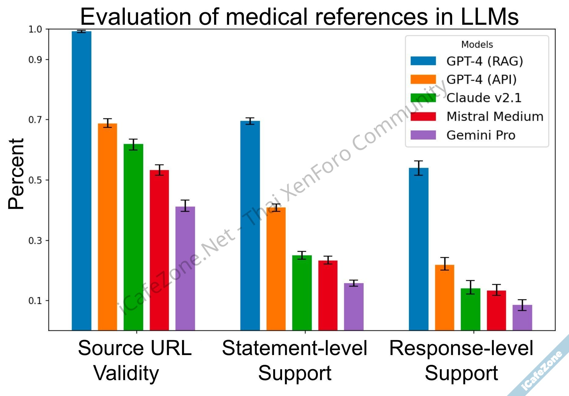 ผลทดสอบพบว่า LLM มีแนวโน้มจะสร้างที่มาข้อมูลเองค่อนข้างบ่อย แม้แต่ GPT-4 ก็ยังสร้างที่มา มั่วๆ ถึง 30% ปัญหานี้ลดได้โดยอาศัยการทำ RAG ที่แหล่งที่มาเกือบทั้งหมดมีจริง แต่พอไปดูคำตอบแล้วกลับพบว่าข้อความแต่ละส่วนนั้นไม่ได้มีที่มาสนับสนุนประโยคในคำตอบจำนวนมาก แม้แต่ GPT-4 แบบ RAG ก็ยังมีคำตอบแบบนี้สูงถึง 30%