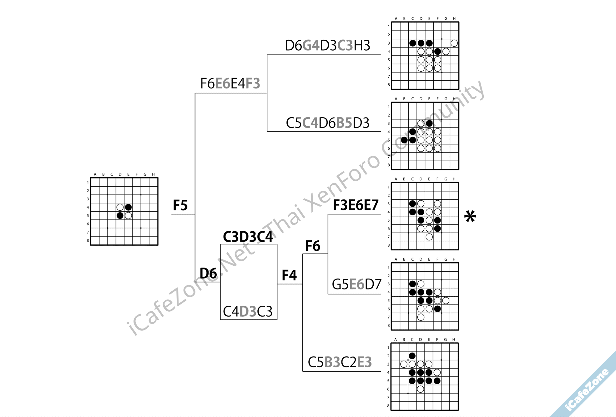 ตัวอย่างการเปิดเกมที่ Takizawa ระบุว่าสองฝ่ายเล่นไม่พลาดเลย และจะนำไปสู่ผลเสมอทั้งหมด