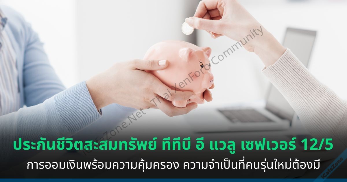 เมื่อรู้จักข้อดีของประกันสะสมทรัพย์แล้ว ขอแนะนำประกันสะสมทรัพย์จาก ttb คือ ประกันชีวิต ทีทีบี อีแวลู เซฟเวอร์ 12/5 (ttb e value saver 12/5) มีค่าเบี้ยฯ รายปี ปีแรก 50,000 บาทขึ้นไป มาดูรายละเอียดที่เป็นจุดเด่นกัน