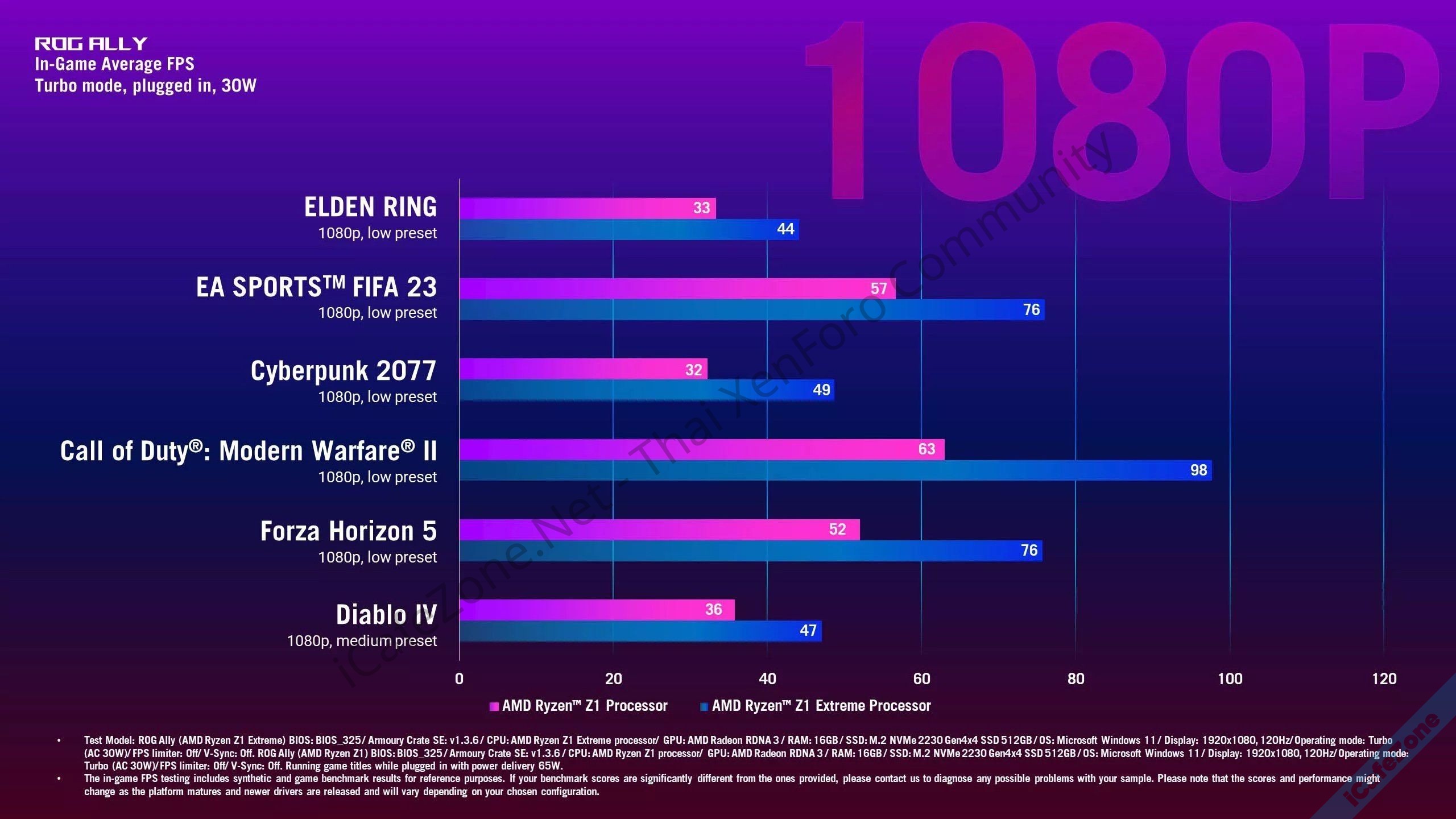 แม้ว่า Z1 และ Z1 Extreme ไม่สามารถเล่นเกมที่เฟรมเรท 120fps ได้อย่างคงที่ แต่ที่น่าสังเกตคือเกมที่เลือกมาวัดประสิทธิภาพมีข้อกำหนดสูงกว่าค่าเฉลี่ยทั่วไปโดยเฉพาะในด้าน GPU