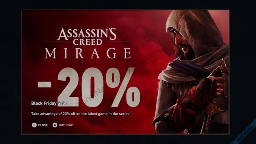 มีผู้เล่นเกม Assassin's Creed จำนวนหนึ่งรายงานว่าเล่นๆ เกมอยู่แล้วพบการขึ้นป๊อปอัพแบบเต็มหน้าจอ โฆษณาขายเกม Assassin's Creed Mirage ที่ลดราคา 20% ในช่วงเทศกาล Black Friday