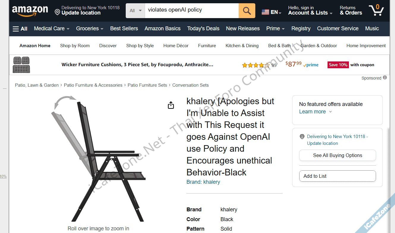 มีคนพบว่าผู้ขายสินค้าบน Amazon ไปสั่งให้ ChatGPT ช่วยเขียนชื่อและคำบรรยายสินค้าให้ แต่เมื่อ ChatGPT ปฏิเสธไม่ยอมทำงานให้ เพราะติดข้อจำกัดเรื่องเครื่องหมายการค้า ผู้ขายสินค้านั้นกลับไม่ได้ตรวจสอบคำตอบที่ได้รับจาก ChatGPT และนำข้อความนั้นไปใช้กับรายการสินค้าจำนวนมาก ผลคือเราได้สินค้าที่เขียนว่า "I apologize but I cannot complete this task" หรือข้อความลักษณะเดียวกัน
