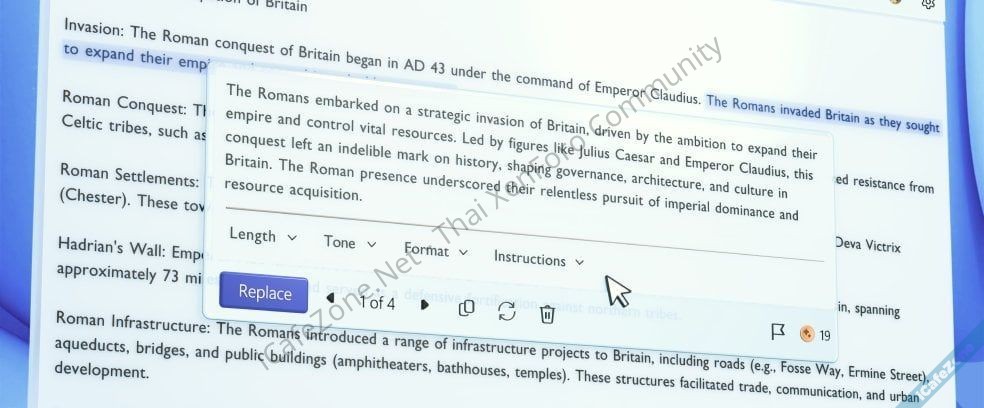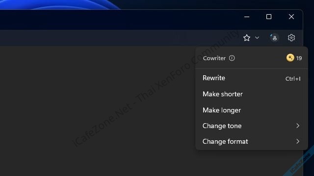 จากภาพตัวอย่างที่ออกมา Notepad จะเพิ่มไอคอนที่มุมขวาบนของเมนู กดแล้วจะเป็นปุ่ม Cowriter โดยต้องอาศัยเครดิตการประมวลผลข้อความที่ฝั่งเซิร์ฟเวอร์ แบบเดียวกับ Bing/Copilot Chat ในปัจจุบัน เราสามารถสั่งให้ AI ช่วยปรับข้อความใหม่ ปรับโทน เขียนให้สั้นหรือยาวขึ้น แบบเดียวกับที่ทำได้ใน Copilot/ChatGPT