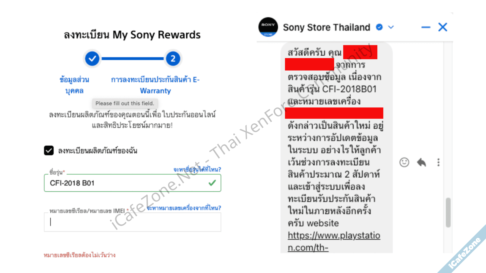 ทีมงาน Blognone ได้ลองทุกวิถีทางเพื่อลงทะเบียนรับประกันกับ Sony ผ่านเว็บไซต์แต่กลับพบว่าทำยังไงก็ลงทะเบียนไม่ได้แม้ว่าชื่อรุ่นของ PS5 โมเดลใหม่ที่กรอกไปว่าเป็น CFI-2018B01 จะถูกต้อง แต่พอใส่หมายเลขเครื่องกลับไม่พบข้อมูลในระบบแต่อย่างใด