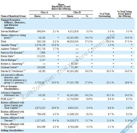 จากเอกสารไฟลิ่งเพื่อไอพีโอเข้าตลาดหุ้นของ Reddit แพลตฟอร์มชุมชนออนไลน์รายใหญ่ มีข้อมูลน่าสนใจของรายชื่อผู้ถือหุ้นใหญ่ Reddit นั่นคือมี Sam Altman ซีอีโอและผู้ร่วมก่อตั้ง OpenAI รวมอยู่ด้วย โดยเขามีหุ้น Reddit คิดเป็นมูลค่ารวม 8.7% ของหุ้นทั้งหมดก่อนไอพีโอ แบ่งเป็นหุ้นคลาส A 4.5% และคลาส B (อำนาจโหวต 10 เท่า) 9.3%