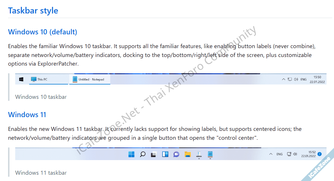 ตัวอย่าง Taskbar ของ Windows 10 ที่รันใน Windows 11 โดย ExplorerPatcher