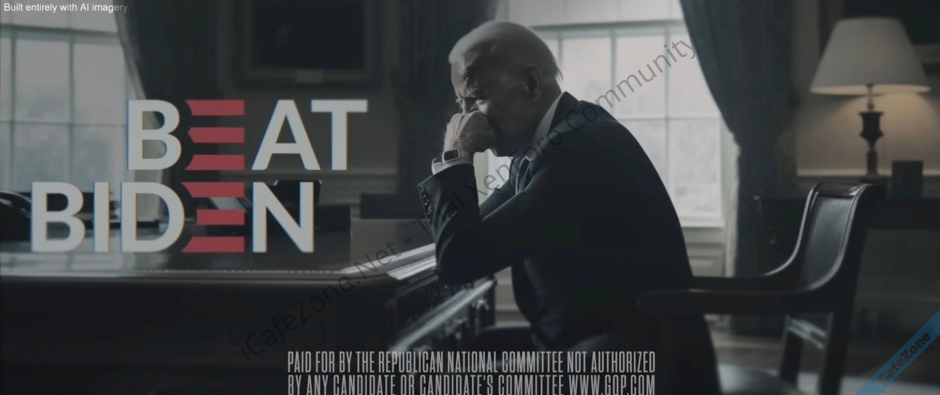 คณะกรรมการพรรครีพับลิกันหรือ RNC (Republican National Committee) ปล่อยวิดีโอโฆษณา Beat Biden เพื่อโจมตีประธานาธิบดีโจ ไบเดนที่ประกอบด้วยรูปภาพที่สร้างจาก AI หลังจากที่เจ้าตัวประกาศว่าจะลงสมัครรับเลือกตั้งอีกครั้งหนึ่งในปี 2024