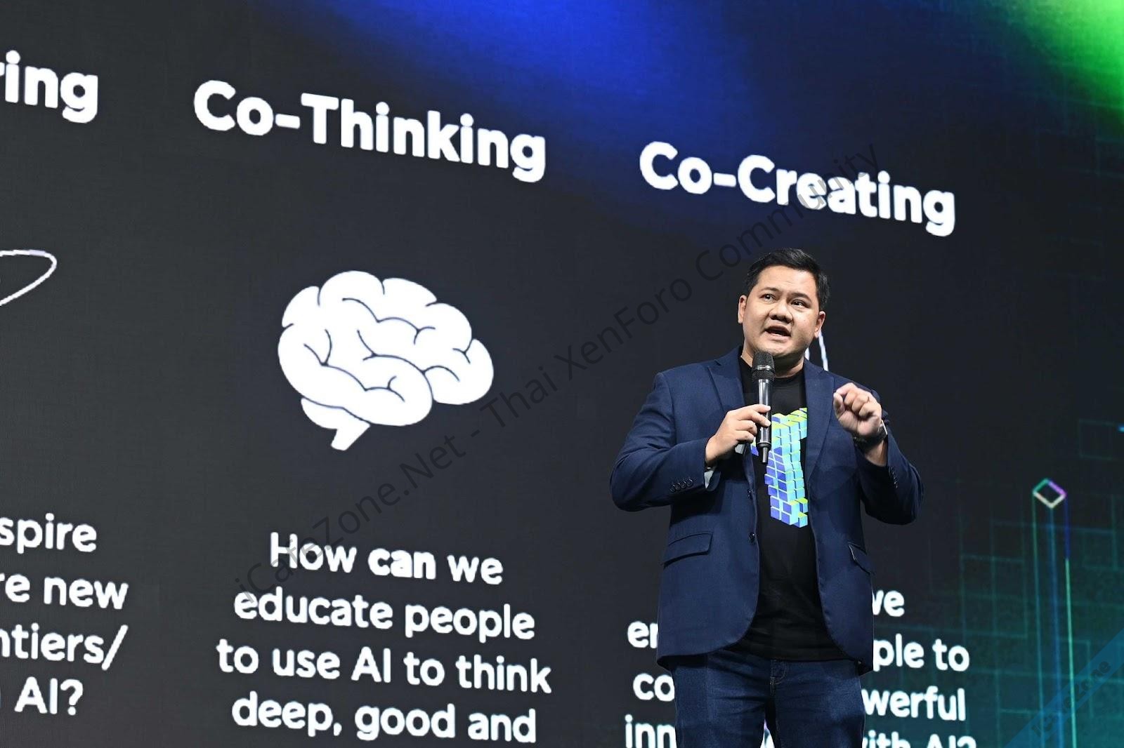 จุดเริ่มต้นคือ จะทำอย่างไรให้คนทำงานร่วมกับ AI มองหาโอกาสใหม่ที่ไม่เคยมีมาก่อนด้วย AI ทำอย่างไรให้คนคิดวิเคราะห์ให้ลึกยิ่งขึ้นด้วย AI และสุดท้ายคือ การสร้างนวัตกรรมใหม่ๆ ที่ทรงพลังด้วย AI