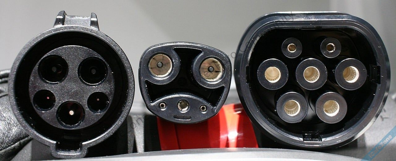 (จากซ้ายไปขวา) หัวชาร์จ SAE J1772, NACS, CCS2 | ภาพโดย Paul Sladen
