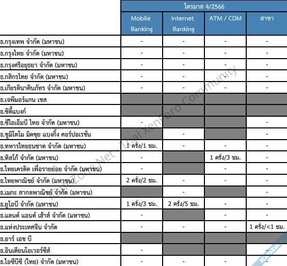 ธนาคารแห่งประเทศไทยปล่อยรายงานสถิติระบบไอทีของธนาคารล่มประจำไตรมาสที่สามของปี 2023 โดยไตรมาสนี้ช่องทางสำคัญที่สุดคือแอปโทรศัพท์มือถือนั้นมีธนาคารมีปัญหา 3 ธนาคาร ได้แก่ TTB, SCB, และ UOB โดย UOB มีปัญหานานที่สุด 3 ชั่วโมง แต่หากนับตามจำนวนผู้ใช้ SCB ก็น่าจะเป็นแอปที่มีผู้ใช้สูงสุดที่มีปัญหาในรอบนี้