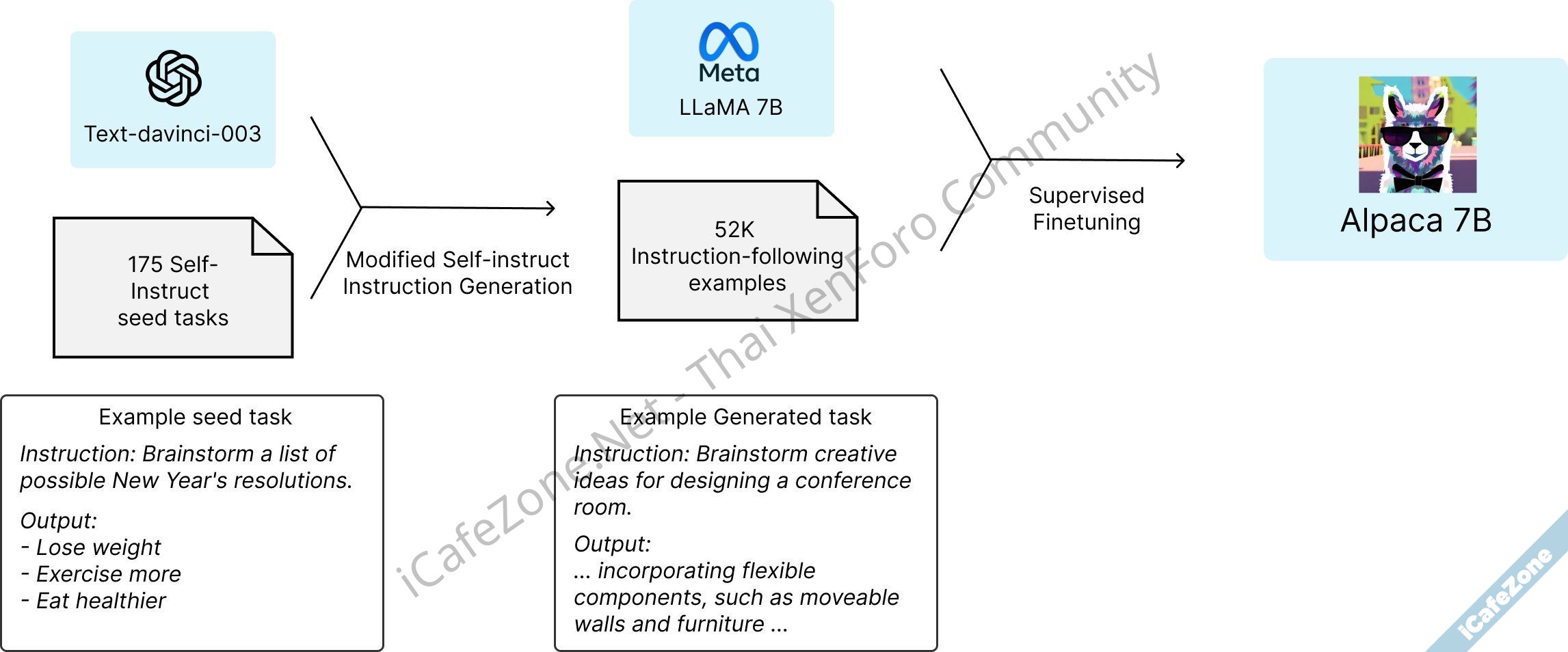 ส่วนมหาวิทยาลัยที่นำ LLaMa ไปใช้งานคือ Stanford มีโมเดลชื่อ Alpaca (ทุกคนล้วนรักสัตว์) เป็นการนำเอาโมเดล LLaMA ขนาดเล็ก 7 พันล้านพารามิเตอร์ มาเทรนปรับแต่ง (fine-tuning) อีกรอบด้วยข้อมูลการถาม-ตอบจาก OpenAI GPT (ฐานข้อมูล text-davinci-003) ช่วยให้โมเดล LLaMA ที่ขนาดเล็กกว่า GPT มาก สามารถตอบคำถามได้ไกล้เคียงกับ GPT มากขึ้น