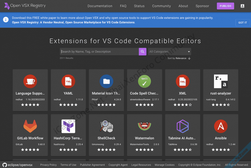 ล่าสุด Open VSX Registry มีส่วนขยายมาเผยแพร่บน 3,000 โครงการแล้ว และได้แรงสนับสนุนจากบริษัทใหญ่อื่นๆ ได้แก่ Google, Huawei, Posit (RStudio เดิม), Salesforce, Siemens, STMicroelectronics มาเพิ่มช่วยให้โครงการอยู่ต่อได้ในทางการเงินด้วย