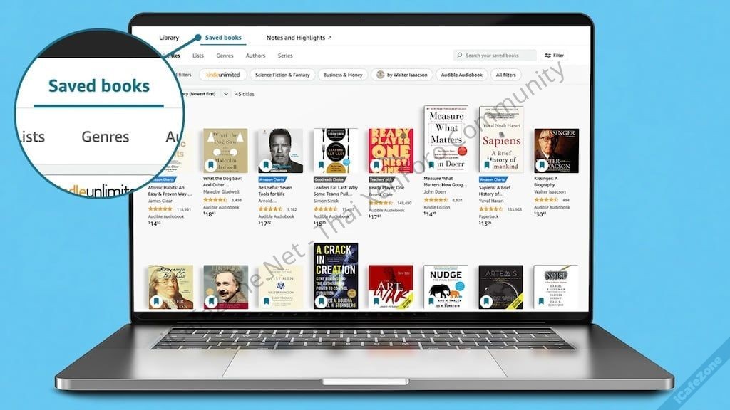 นอกจากหนังสือที่ซื้อไว้แล้ว หน้าจอใหม่นี้ยังมีหนังสือที่กดไว้ใน Wish List และหนังสือที่เคยยืมจาก Kindle Unlimited มาไว้ด้วย ในหน้าจอนี้ยังมีโหมด Discovery สำหรับแนะนำหนังสือที่ใกล้เคียงกัน สามารถฟิลเตอร์หนังสือที่เคยกดเซฟไว้ได้ว่าสนใจซื้อเล่มไหนเป็นเล่มต่อไป หรือฟิลเตอร์ได้ว่ามีสิทธิ์ผ่านหนังสือเล่มนั้นผ่านบริการ Kindle Unlimited อยู่แล้วหรือเปล่า