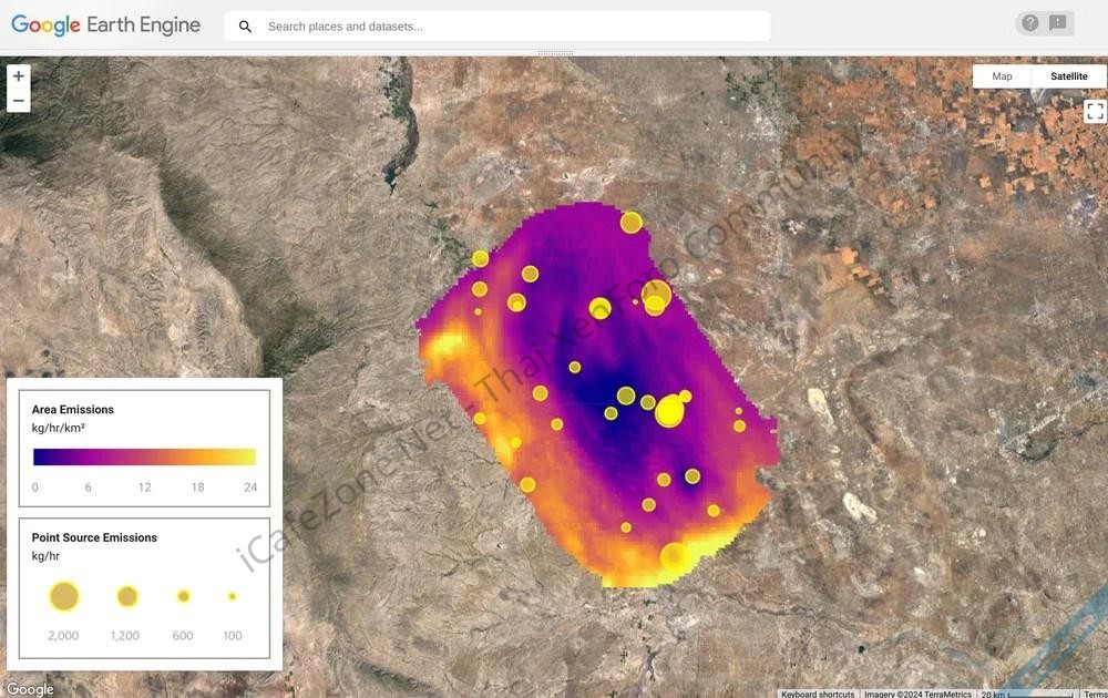 ตัวอย่างภาพถ่ายดาวเทียมแสดงระดับของมีเทน ใช้งานผ่าน Google Earth Engine