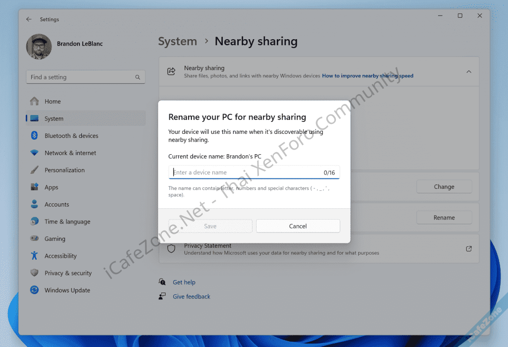 - หน้าจอแชร์ข้อมูลข้ามเครื่อง Settings > Nearby sharing สามารถเปลี่ยนชื่อพีซีของเราที่ให้คนอื่นมองเห็นชื่อได้แล้ว