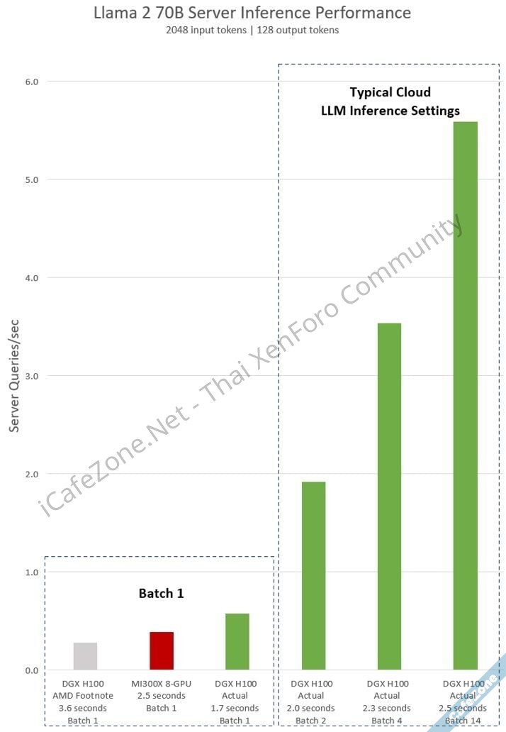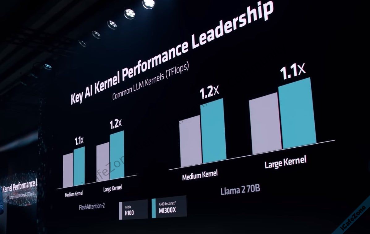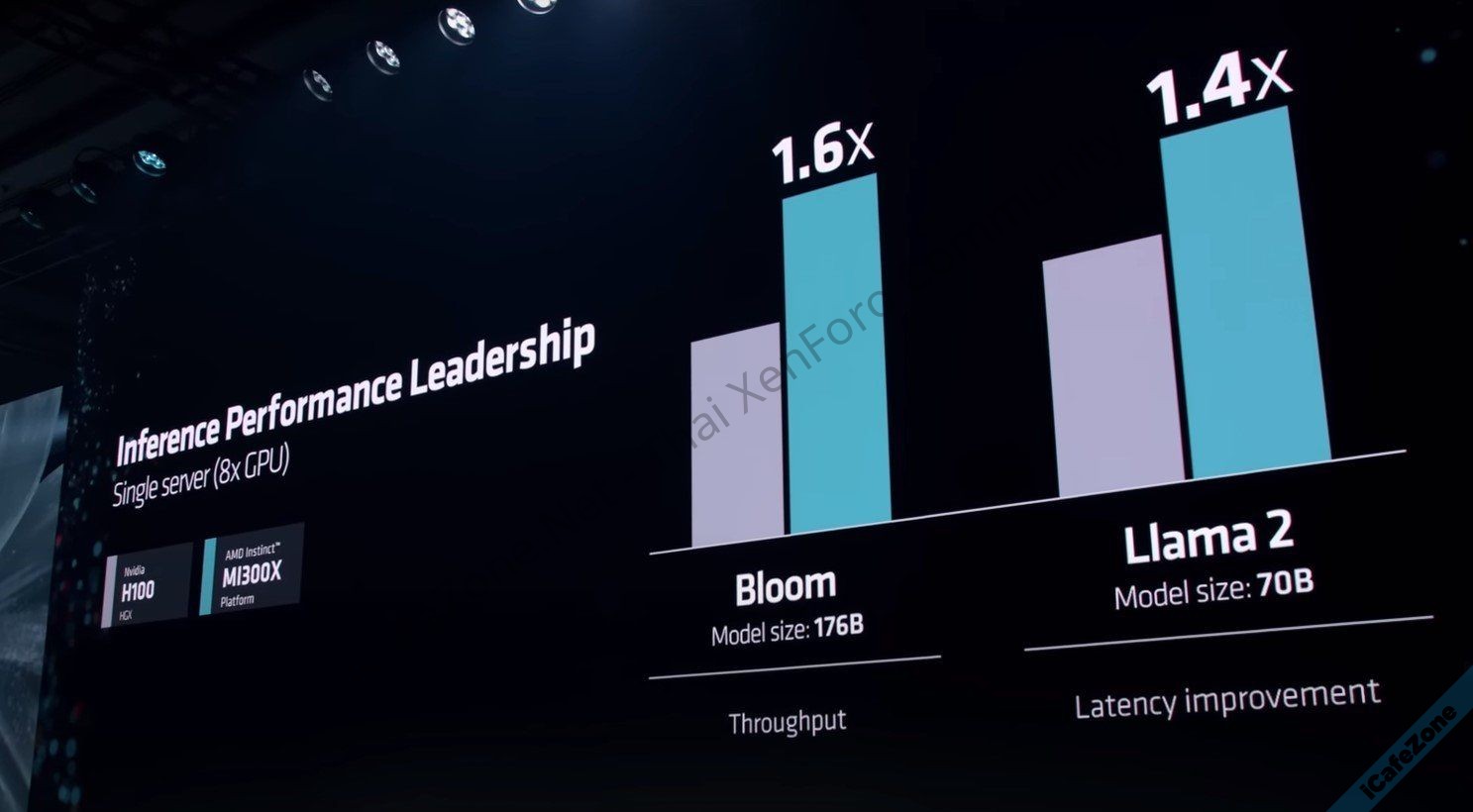 สัปดาห์ก่อน AMD เริ่มวางขายชิปประมวลผลปัญญาประดิษฐ์ Instinct MI300X มีประเด็นน่าสนใจคือ Lisa Su ซีอีโอของ AMD โชว์ตัวเลขข่มทับคู่แข่ง NVIDIA H100 โดยวัดจากการรันโมเดลยอดนิยม Llama-2-70B ว่าแรงกว่ากัน 1.2 เท่า (จีพียูตัวเดียว) และ 1.4 เท่า (เซิร์ฟเวอร์ 8 จีพียู)