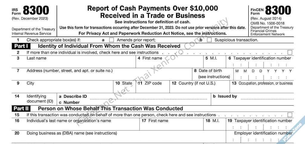 การแจ้งธุรกรรมเหล่านี้ต้องกรอกฟอร์ม 8300 โดยฝั่งผู้รับเงินเป็นผู้แจ้ง ข้อมูลที่ต้องแจ้งค่อนข้างละเอียด ตั้งแต่ชื่อ, นามสกุล, ที่อยู่, วันเกิด, หมายเลขประจำตัว ตลอดจนประเภทธุรกรรม