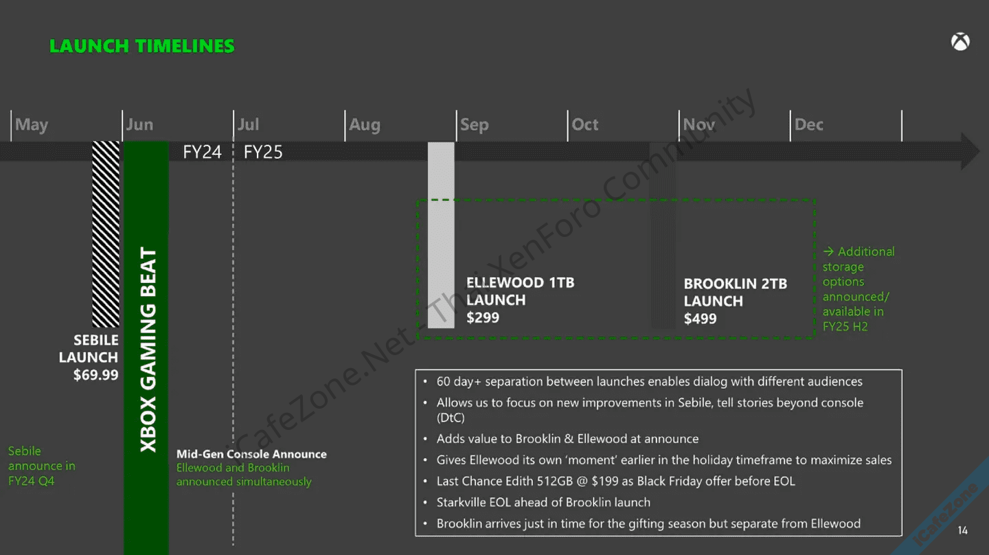 ราคาที่จะเปิดตัวจะอยู่ที่ 499 ดอลลาร์ เท่ากับ Series X รุ่นปัจจุบัน และตามแผนที่หลุดออกมา Brooklin น่าจะเปิดตัวช่วงกลางปี 2024 และขายปลายปี ส่วนคอนโทรลเลอร์จะเปิดตัวช่วงปลายพฤษภาคมปีหน้า