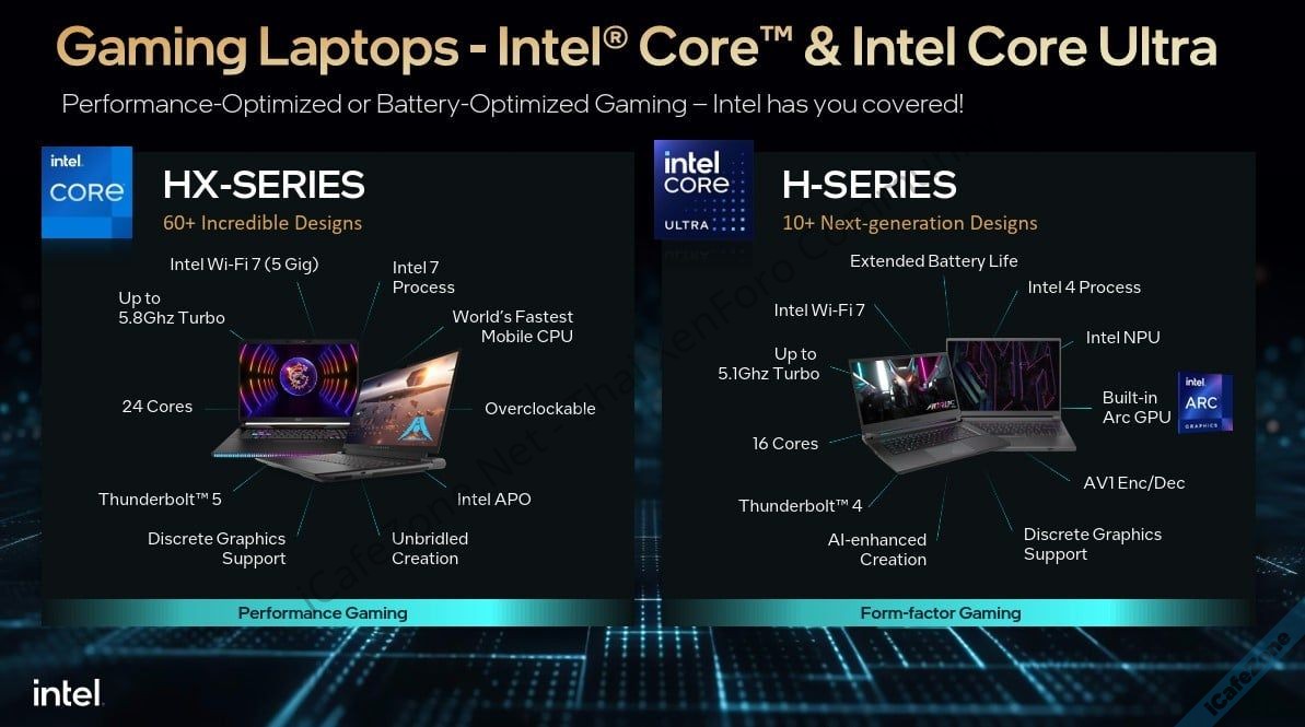 คำอธิบายของอินเทลคือถ้าอยากได้โน้ตบุ๊กตัวแรงจัดๆ ให้ไปตัว HX-Series แต่ถ้าต้องการสมดุลระหว่างขนาด น้ำหนัก แบตเตอรี่ด้วย ก็ไปตัว H-Series (คาดว่าปีหน้า 2025 น่าจะปรับมาใช้ Core Ultra ทั้งหมดแล้ว ตอนนี้ของเก่ายังเหลือต้องระบายออกก่อน)