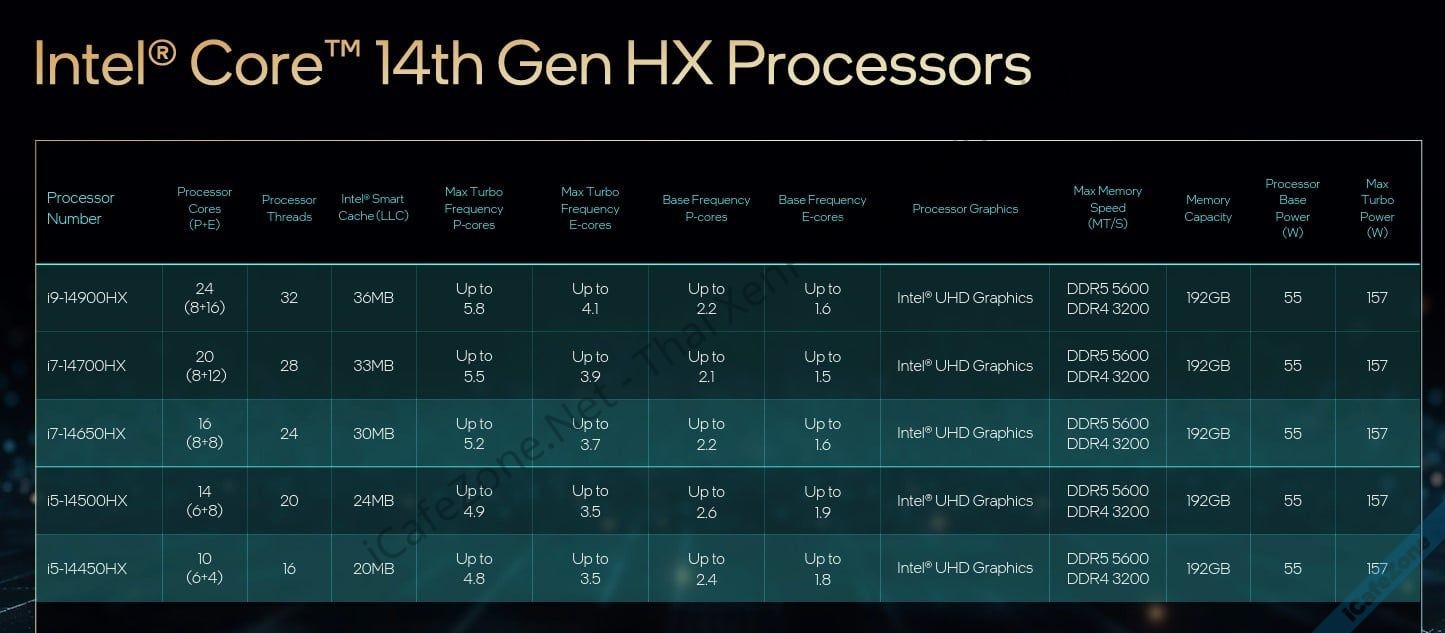 Core 14th Gen รหัส HX มีด้วยกันทั้งหมด 5 รุ่นย่อย ได้แก่