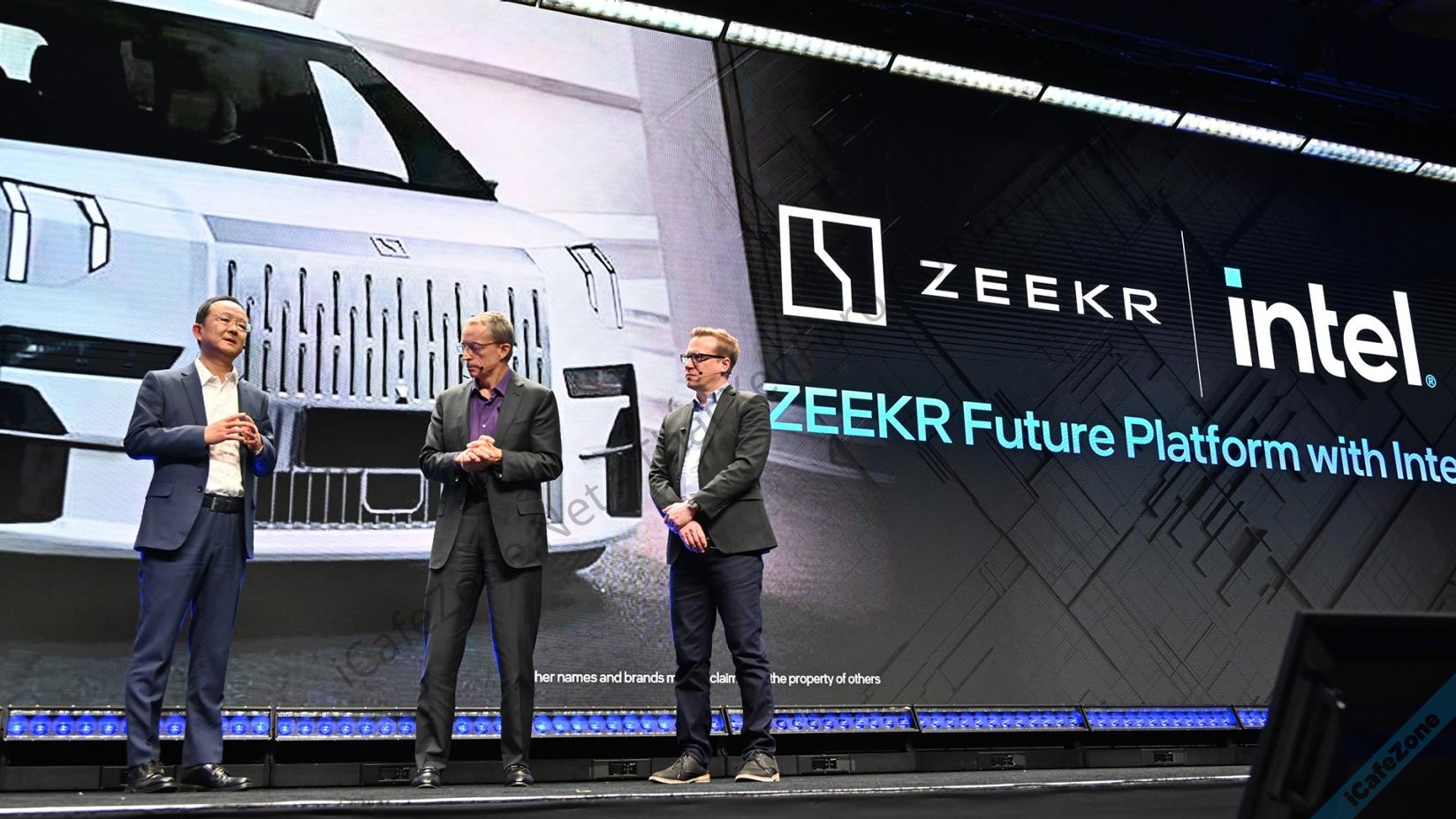 อินเทลยังโชว์การนำชิป SDV SoC ไปใช้งานในรถยนต์ โดยเชื่อมต่อกับกล้องรอบคัน และนำชิปประมวลผลอื่นของตัวเองมาช่วย เช่น ชิปประมวลผลภาพ RealSense Vision V5-A หรือจีพียู Intel Arc ทำให้สามารถประมวลผลงานในรถยนต์หลายอย่างได้พร้อมกัน เช่น ระบบขับขี่ปกติ ระบบแสดงผลหน้าจอรถยนต์ คู่ไปกับการคุยวิดิโอคอลล์ และเล่นเกม AAA ในรถยนต์ เป็นต้น