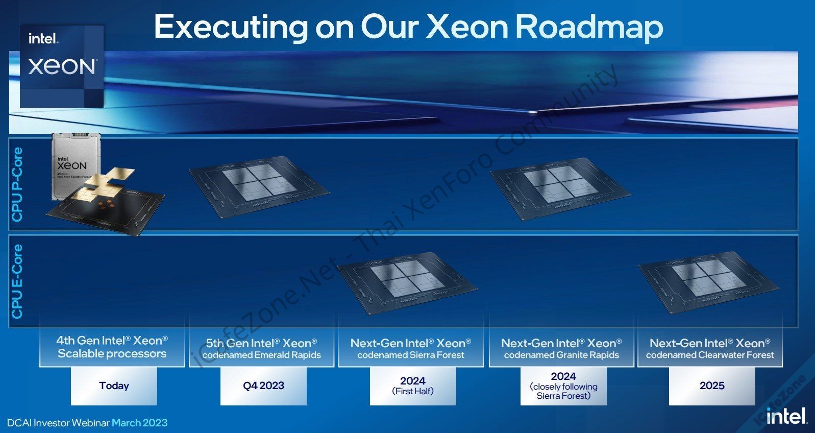 อินเทลประกาศแผนการออกซีพียูเซิร์ฟเวอร์ตระกูล Xeon Scalable ในอนาคต ถัดจาก 4th Gen Xeon Scalable (Sapphire Rapids) ที่เพิ่งวางขายเมื่อเดือนมกราคม 2023