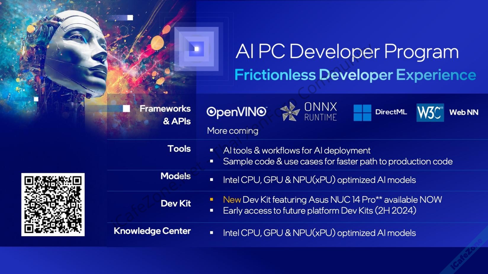 ในโอกาสเดียวกัน อินเทลยังเชิญทั้งผู้ผลิตซอฟต์แวร์ (independent software vendors) และผู้ผลิตฮาร์ดแวร์ (independent hardware vendors) เข้าร่วมโครงการ AI PC Developer Program เพื่อให้มั่นใจว่าซอฟต์แวร์จะทำงานได้ดีบน AI PC ที่ใช้ Core Ultra