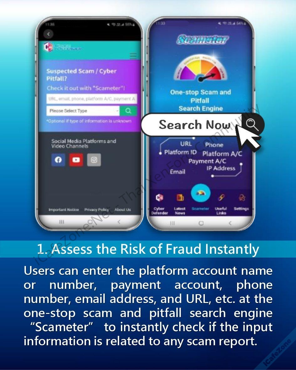 ความพิเศษของตำรวจฮ่องกงคงเป็นการเปิดบริการค้นหา Scameter ระบบค้นหาข้อมูลว่าเกี่ยวข้องกับการฉ้อโกงหรือไม่ โดยสามารถค้นได้ทั้ง URL เว็บ, อีเมล, หมายเลขโทรศัพท์, ชื่อบัญชีออนไลน์ต่างๆ, หมายเลขบัญชีธนาคาร, รวมถึงหมายเลขไอพี