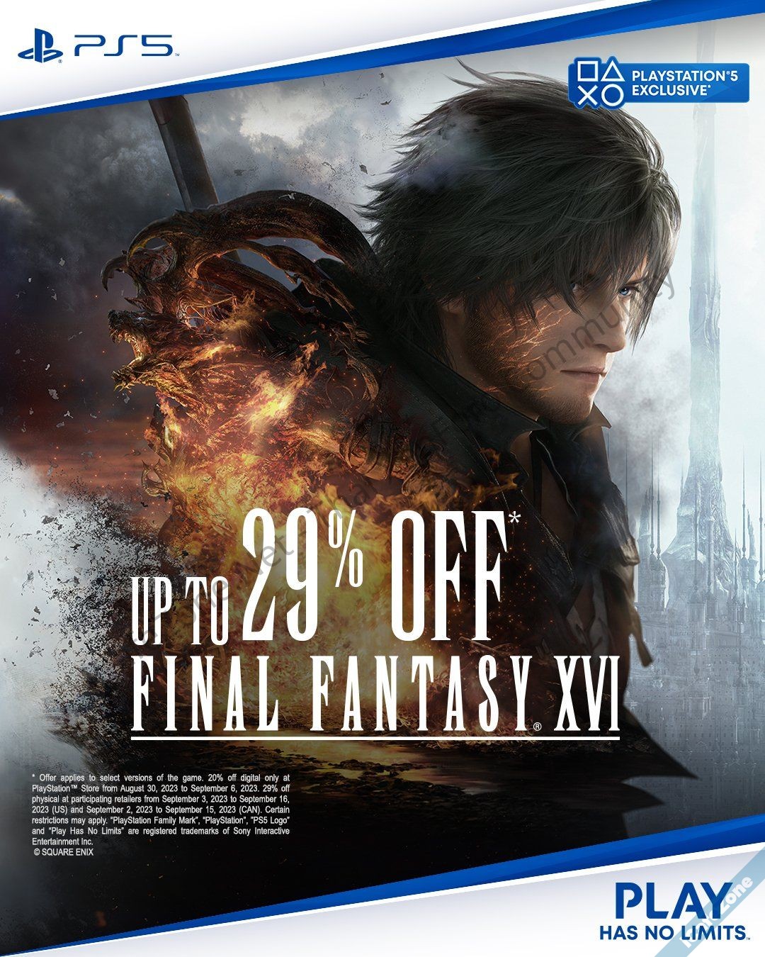 Final Fantasy XVI เกมภาคหลักภาคที่ 16 ของ Final Fantasy ประกาศลดราคาเกมเป็นครั้งแรกแล้วหลังวางจำหน่ายได้เพียง 3 เดือน (ตัวเกมออกเมื่อวันที่ 22 มิถุนายนที่ผ่านมา) โดยลดราคาทั้งเวอร์ชัน Standard และ Deluxe ในรูปแบบดิจิทัล