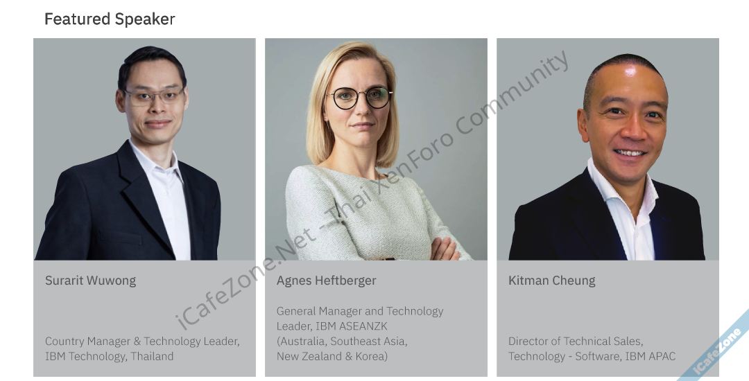 หัวข้อ Turn Challenges into Opportunities with AI and Hybrid Cloud AI และ Hybrid Cloud นั้นกำลังก้าวสู่การเป็นเทคโนโลยีโครงสร้างพื้นฐานสำคัญของธุรกิจองค์กรที่จะใช้ในการสร้างขีดความสามารถในการแข่งขันใหม่ พร้อมปรับตัวรับมือเข้ากับความเปลี่ยนแปลงที่จะเกิดขึ้นอย่างรวดเร็วในอนาคตระยะยาว ซึ่ง IBM เองก็จะนำเสนอแนวทางใหม่ที่จะช่วยให้ธุรกิจองค์กรได้เตรียมพร้อมกับการยกระดับของรากฐานสำคัญทางเทคโนโลยีครั้งใหญ่นี้