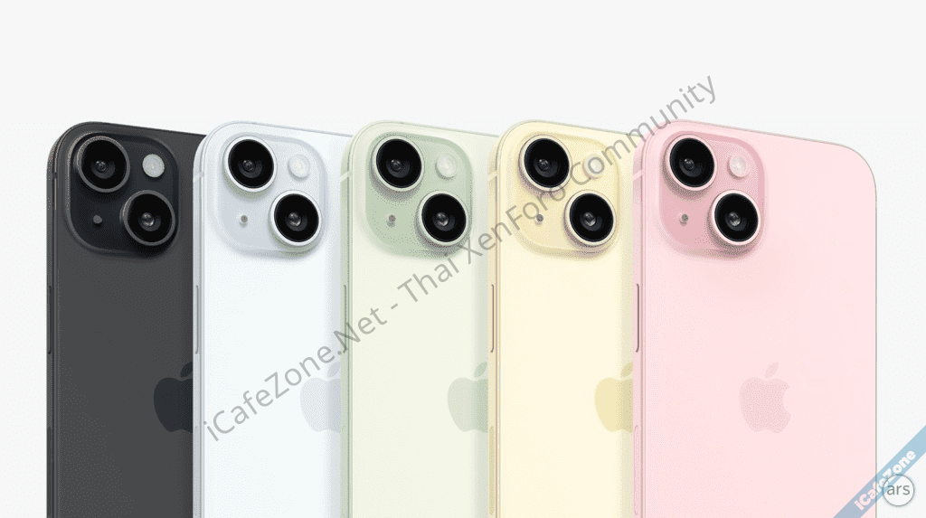 iPhone 15 และ iPhone 15 Plus มี 5 สีคือดำ, ฟ้า, เขียว, เหลืองและชมพูในโทนพาสเทล ราคาเริ่ม 32,900 บาท และ 37,900 บาทตามลำดับ